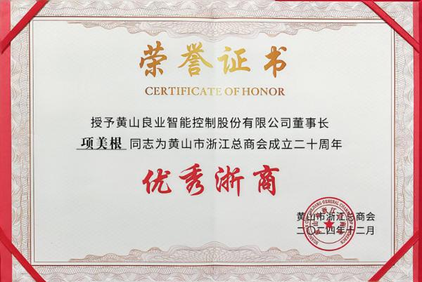 黃山良業(yè)公司項(xiàng)美根榮獲“黃山市浙江總商會(huì)成立二十周年優(yōu)秀浙商”