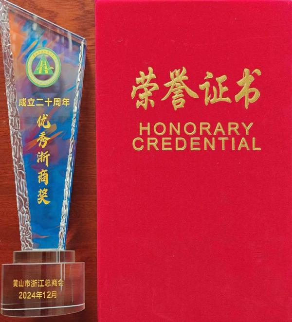 2024年12月18日下午,黃山市浙江商會(huì)五屆三次會(huì)員代表大會(huì)暨成立二十周年慶典,在黃山香茗酒店二樓“云海廳”隆重召開。大會(huì)由肖紅霞執(zhí)行會(huì)長主持,審議通過陳富標(biāo)會(huì)長工作報(bào)告和胡罡監(jiān)事會(huì)主席財(cái)務(wù)工作報(bào)告,宣貫黃山市浙江商會(huì)《關(guān)于黃山市浙江總商會(huì)成立二十周年表彰優(yōu)秀浙商通報(bào)》(黃浙商字[2024]8號)。“黃山市杰出浙商”(5名)、“黃山市優(yōu)秀浙商”(20名))”在所表彰的二十位黃山市優(yōu)秀浙商中,我公司終身名譽(yù)董事長項(xiàng)美根先生位列榜首,獲此殊榮。